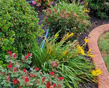 After removing overgrown plants, we installed new plants that were easier to maintain and to bring color to the flowerbeds.